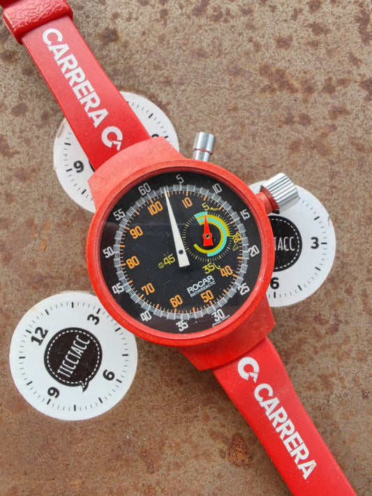 Vintage 70er Jahre ROCAR Armbanduhr Stoppuhr 49*49 mm CARRERA