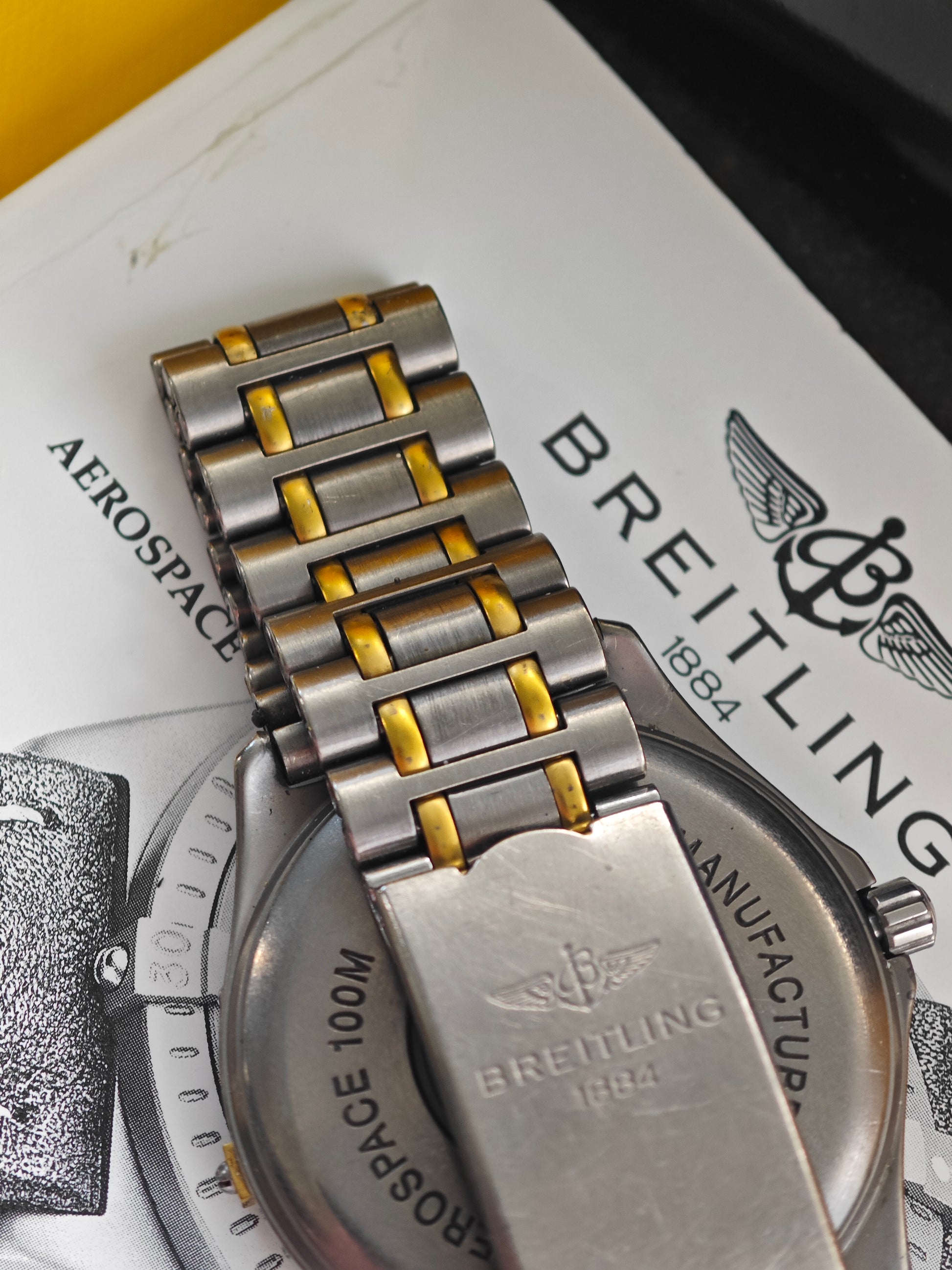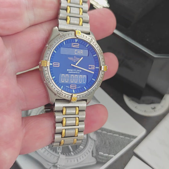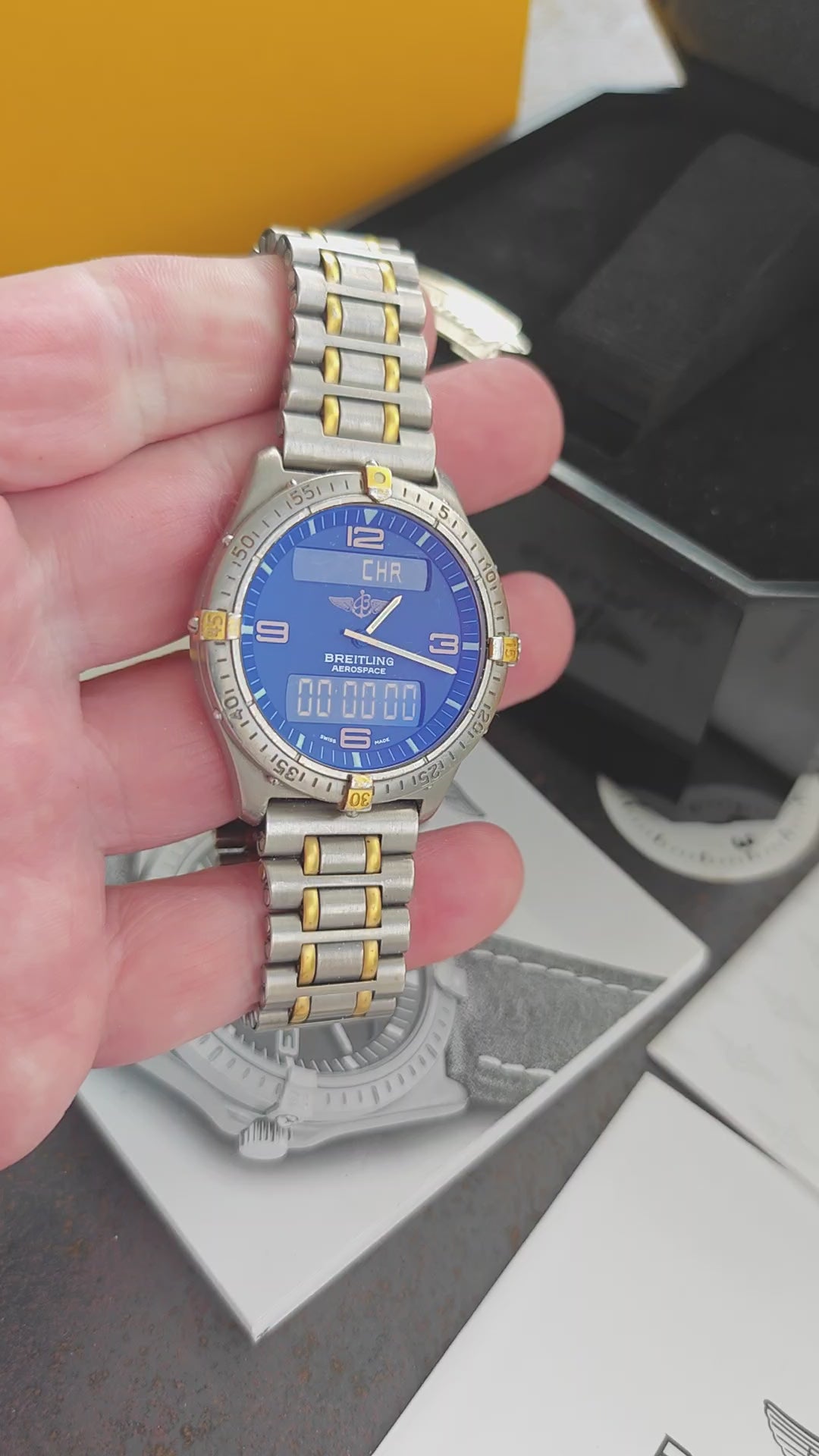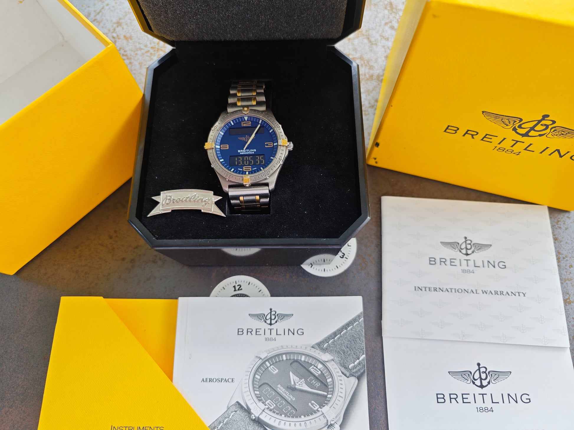 Breitling Aerospace F56062, blaues Zifferblatt, zweifarbig – komplettes Set, 1995
