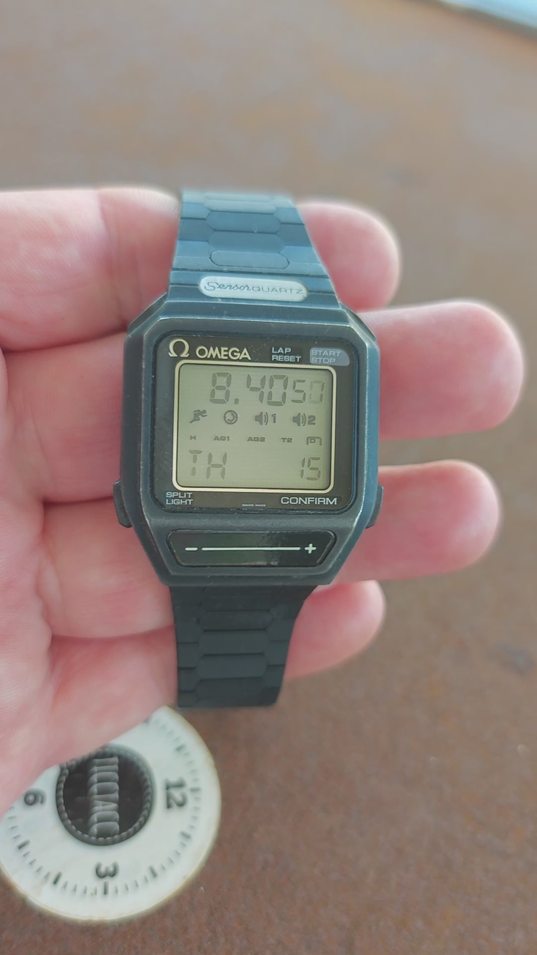 SUPER seltene OMEGA schwarze PVD Sensorquartz LCD 1640 - 19 cm Handgelenksumfang