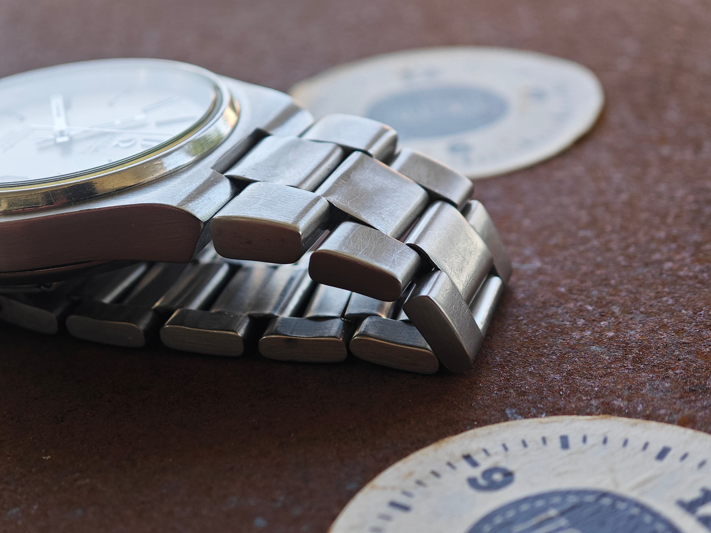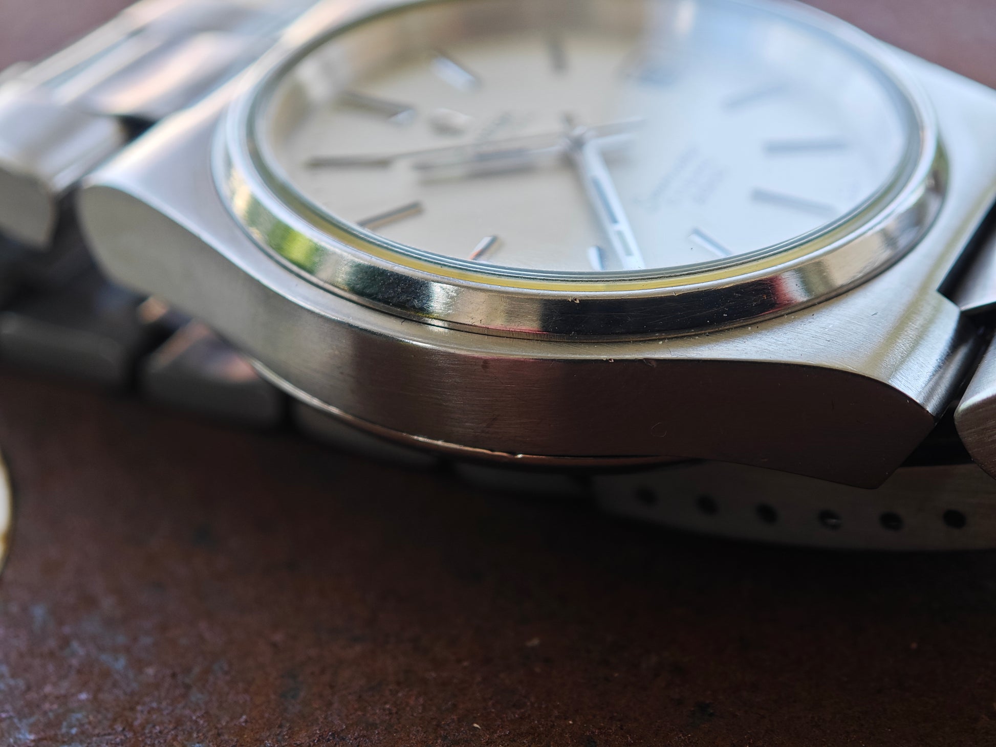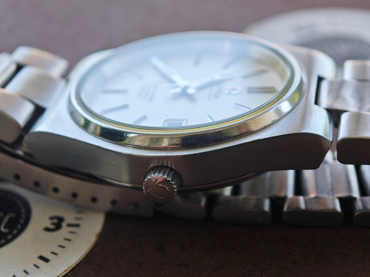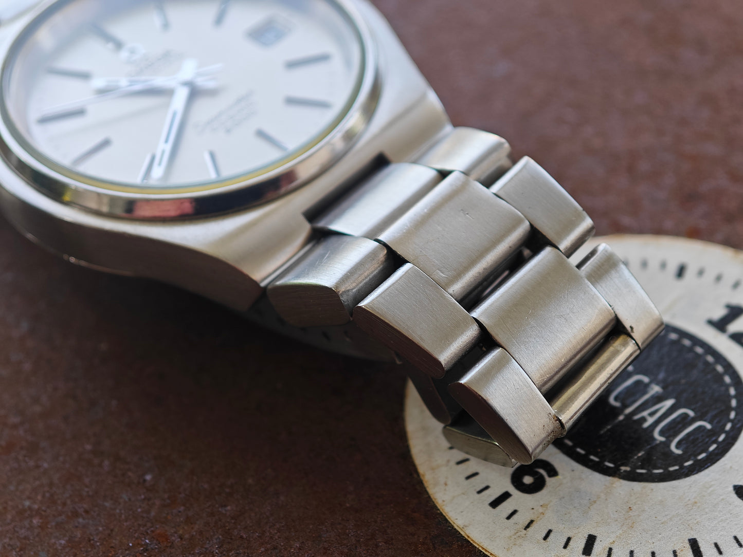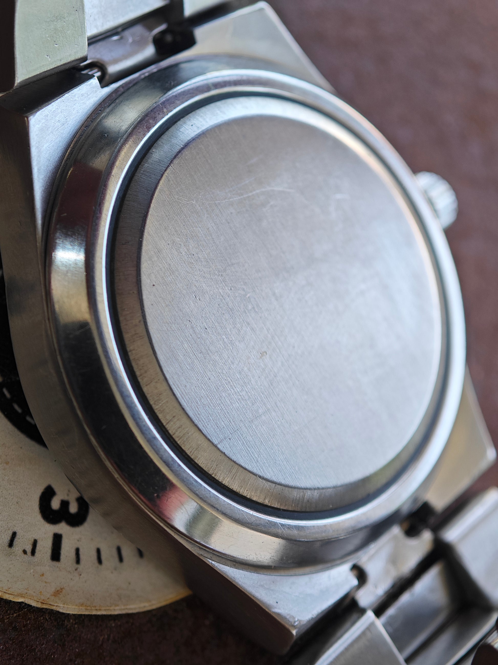 Die meisten COSMIC 2000-Uhren waren Werkzeuguhren und wurden stark beansprucht. Hier haben wir ein neuwertiges Exemplar. Unpoliert mit extrem scharfen Kanten, sehr sauberem Glas und Uhr. Das Zifferblatt – oft mit Korrosion – ist perfekt, ebenso die Zeiger. Die Uhr wird mit ihrem Originalarmband und -verschluss für einen Handgelenkumfang von 18–18,5 cm geliefert – wir haben zusätzliche Glieder, bitte prüfen Sie dies im Voraus. Ein Anfangsglied weist leichte Gebrauchsspuren auf – wie bei diesem Armbandtyp üblich. In diesem Zustand müssen Sie sehr lange suchen, um diese Uhr zu finden. Es ist die erste, die wir seit 4 Jahren anbieten. Sammlerzustand.
