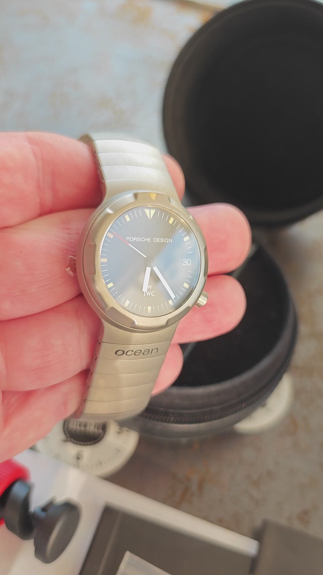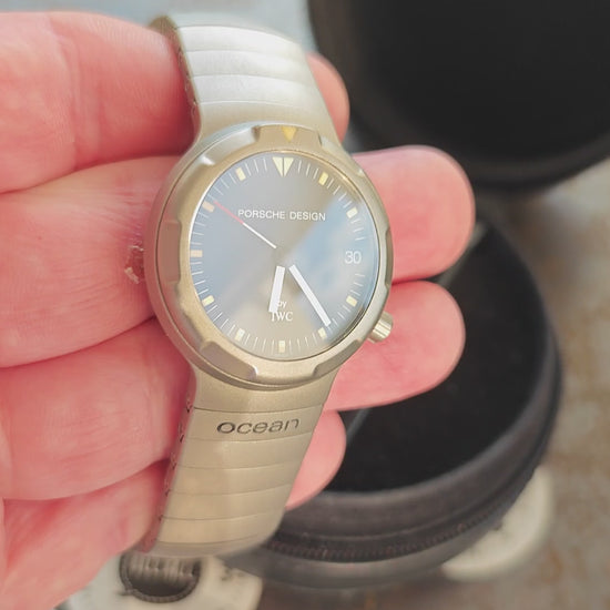 Dies ist eine ultimative Uhr in neuwertigem Zustand – IWC Porsche Design OCEAN 500. Volltitan. Alle Papiere, Infomaterial und was auch immer ist dabei. Bandwechselwerkzeug. Außenbox wie neu, Lederbox wie neu, Uhrenhalter wie neu, zwei weitere Glieder zum Erweitern von ca. 18,9–18,5 auf 19,0–19,5 cm Handgelenksgröße. Sogar die Originalrechnung von 1997 ist dabei. Händleraufkleber. Passende Rechnung. Händleraufdruck. Gehäusenummer und Modellnummer übereinstimmend. Diese Uhr wird nie wieder auftauchen.