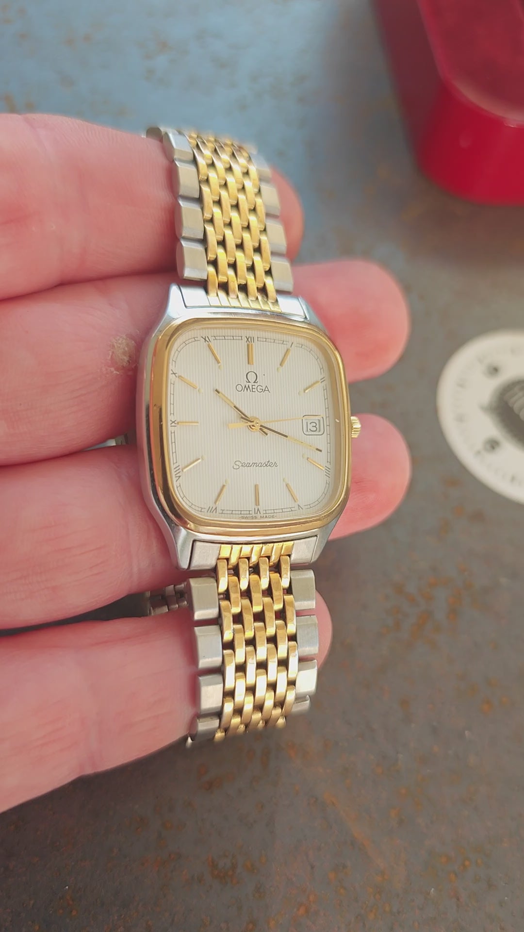 NEUWERTIGES OMEGA Seamaster BREST Bicolor 1430 & burgunderfarbene Box