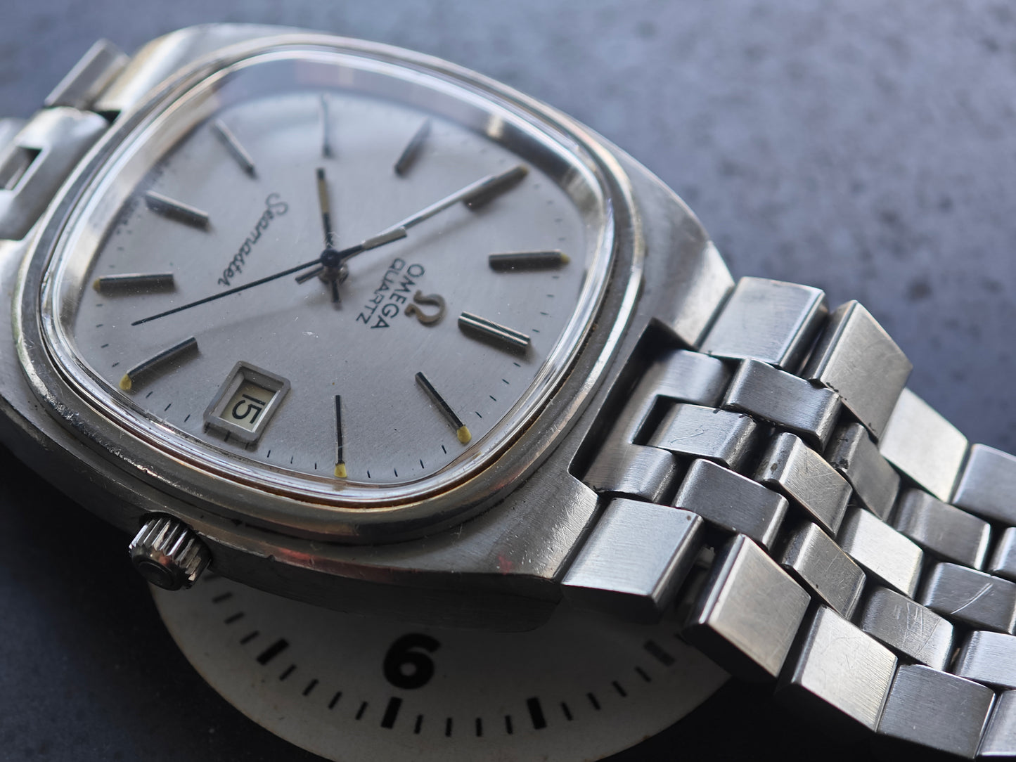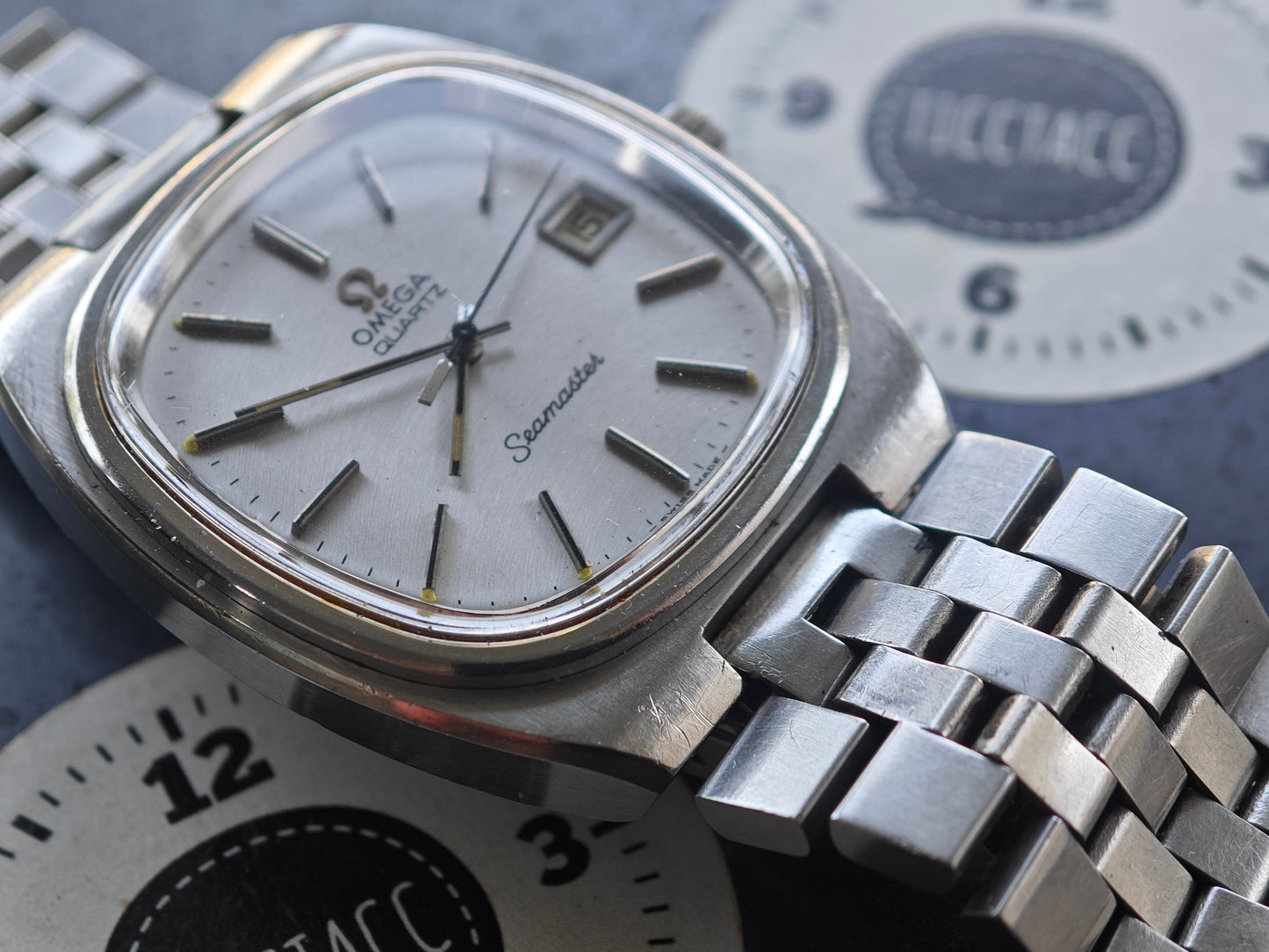 Di recente è diventato molto difficile trovare un OMEGA SEAMASTER TV, il cosiddetto modello EXECUTIVE. Splendida cassa in stile TV e quadrante e lancette super puliti. L'orologio è dotato del suo bracciale originale, per polsi da 19,0 a 19,5 cm, molto lungo per questo stile di bracciale. L'orologio è dotato del movimento intelligente 1342 incorporato, con lancetta dei secondi rotante per impostare i minuti. La corona può essere azionata tramite le funzioni di trazione e pressione. Uno dei movimenti al quarzo più sofisticati di OMEGA.