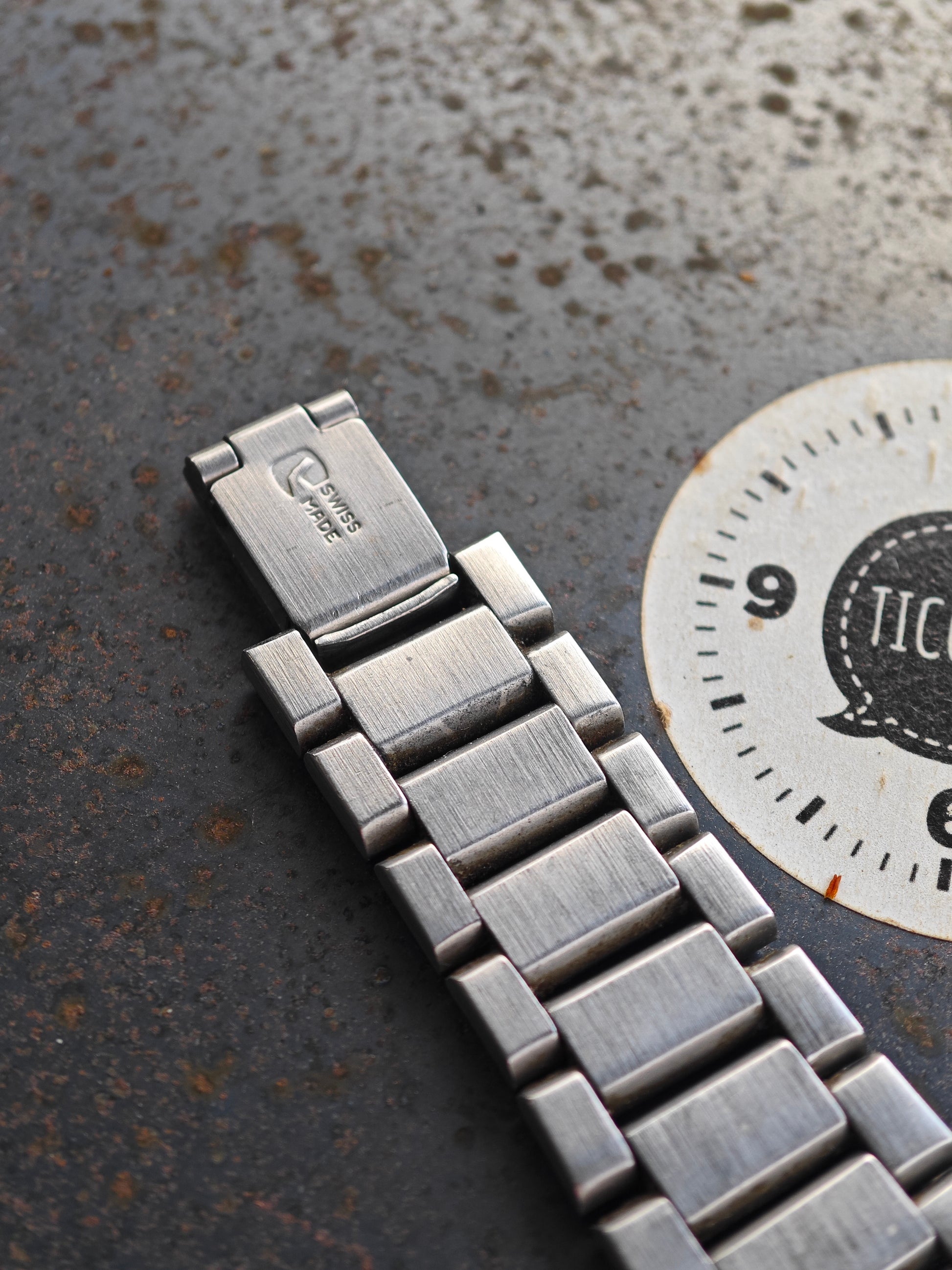 Questo Zodiac Astrographic SST Mystery Dial è in condizioni praticamente pari al NUOVO. Presenta lievi segni di usura su cassa, bracciale e cristallo. Tuttavia, trovare questo modello in condizioni così eccezionali è estremamente raro oggi. Principalmente a causa della cassa grande e spessa, la maggior parte dei modelli ha un aspetto fortemente usurato. Il Mystery Dial è un effetto sorprendente, con dischi al posto delle lancette che ruotano e lasciano scorrere la lancetta dei secondi come per magia sul quadrante. L'orologio è stato consegnato negli anni '70 con un normale bracciale NSA o un esclusivo bracciale realizzato da Chatelain. Qui abbiamo la versione Chatelain con una circonferenza del polso di circa 18 cm. Abbiamo altri braccialetti disponibili, si prega di chiedere in anticipo. Anche in questo caso, trovare questo orologio così curato è raro, con tutte le funzioni funzionanti, come la corona, la funzione data e tutti i dischi che scorrono perfettamente. Orologio da collezione.