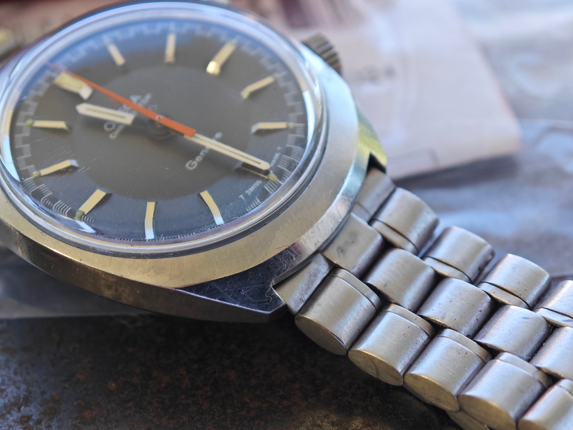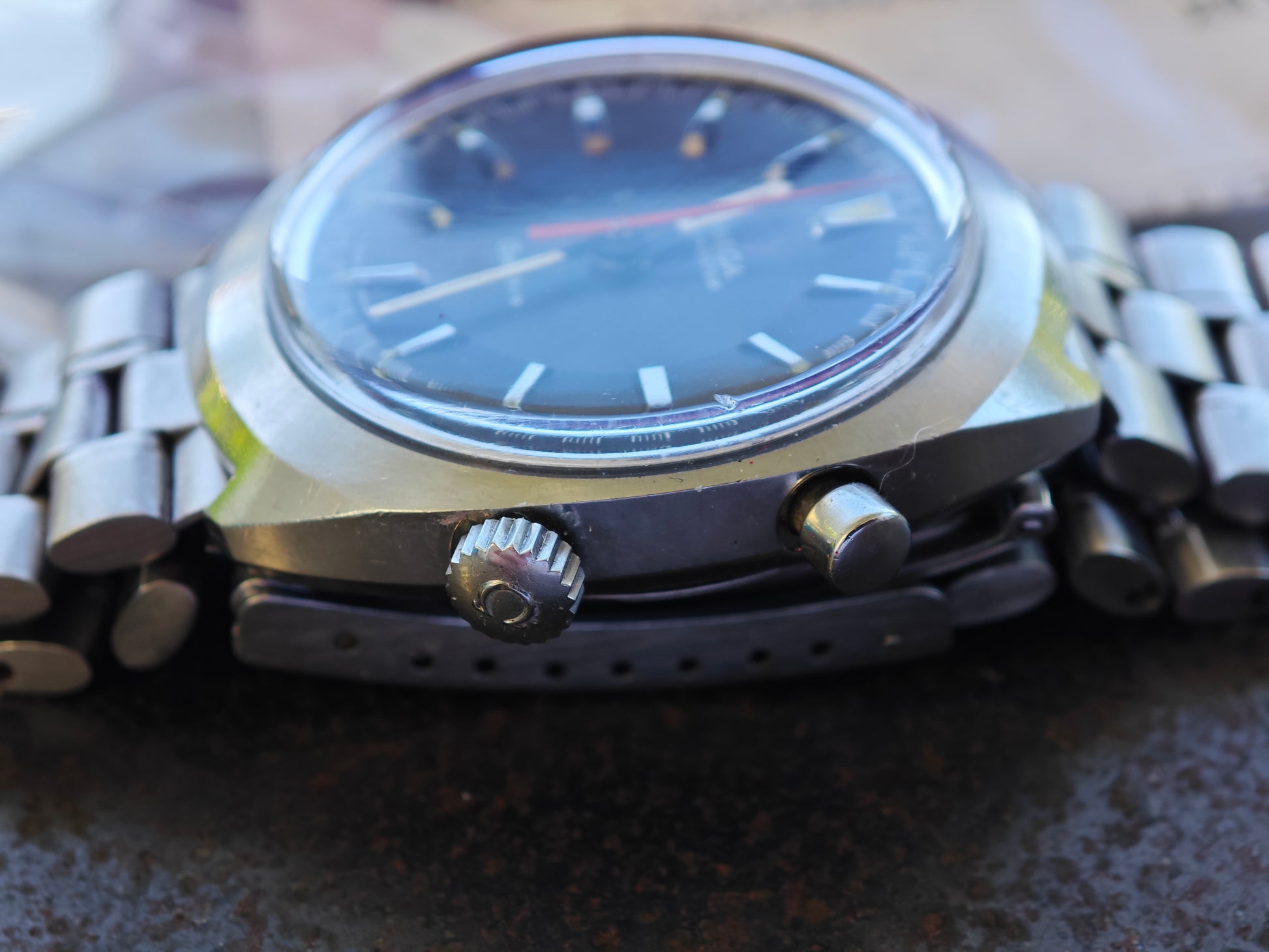 Getting a OMEGA Geneve ChronoStop in such a quality is very rare. The watch is in very good conditions with only minor wear to case and bracelet. Some wear to crystal - original OMEGA stamp at the center - but still 98-99% quality after almost 60 years. The watch comes on the SUPER SUPER rare 123 end Link bracelet. Most watches normally come with a leather strap. The bracelet is still in top conditions with full Length at about 20,0 cm wrist size fitting. More important the rare OMEGA Box Original to this model IS enclosed. That again unique. Box ist in very good conditions too. Loosing some of the fibre material inside but still close to perfect conditions. Watch was serviced in April 2024 and comes with service papers.